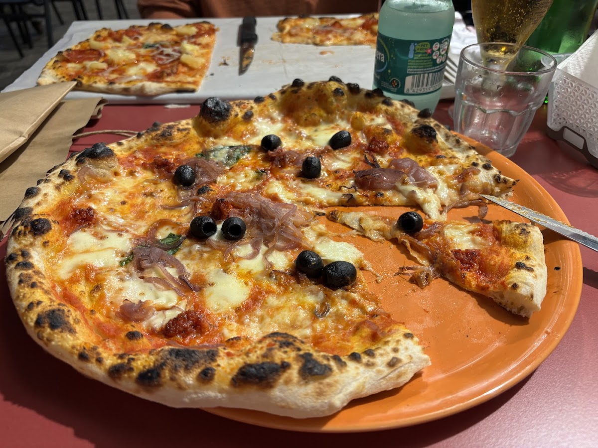 Amazing place with friendly staff and delicious food. The pizzas start at about 7€ and the most expensive ones are like 13€ (these are the prices for the 30-32 cm size). They have your classic diavolas and four cheeses, but also some more unique options like pizza with pistachio cream or walnuts and honey. There is a proper pizza oven. The owner and main chef of this place is a real Italian. He kept telling us jokes and gave us extra melon and ice cream for dessert - we didn’t ask for it and there was no extra charge (I am convinced he would keep giving us extra food until we burst if we didn’t leave haha). This place is truly a gem and I definitely recommend visiting!