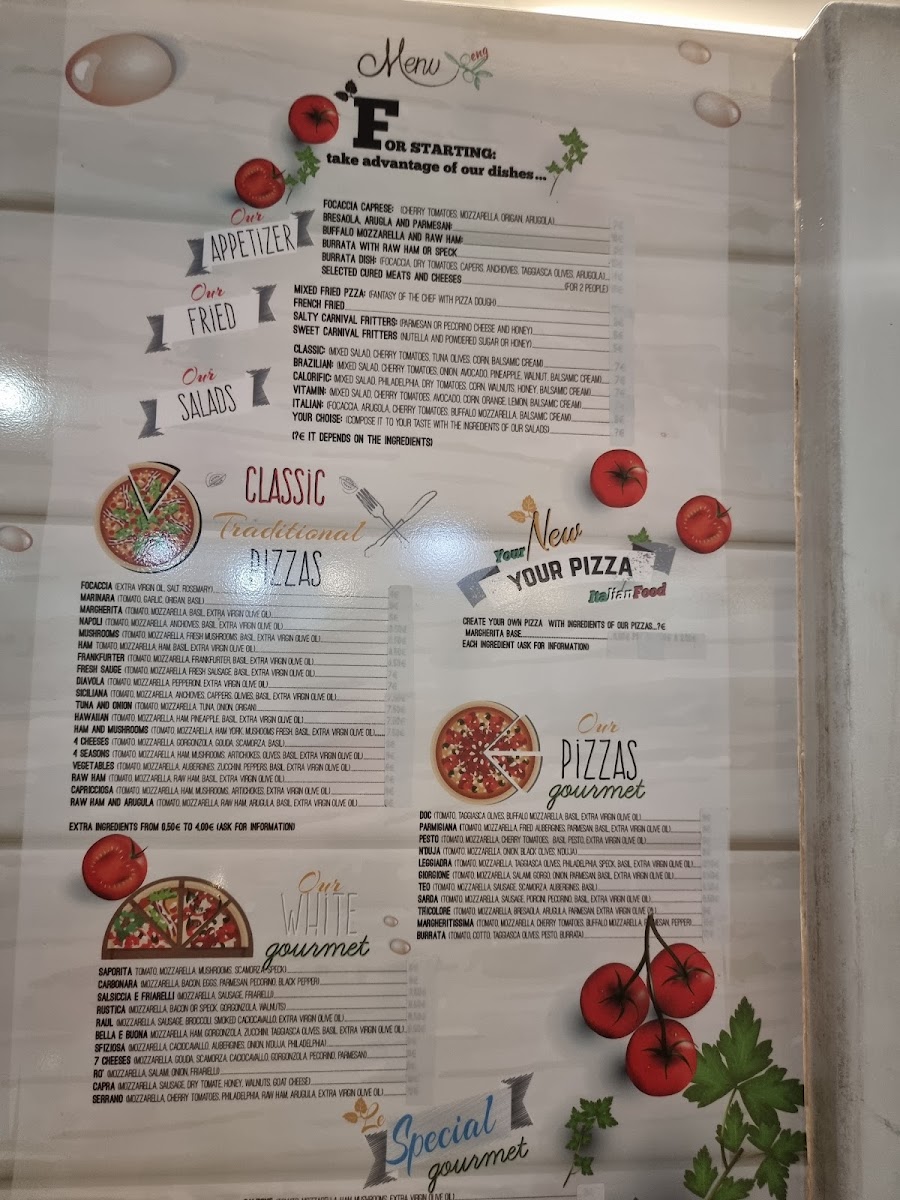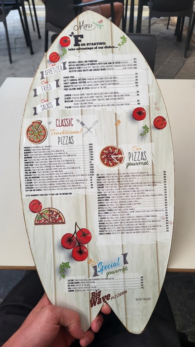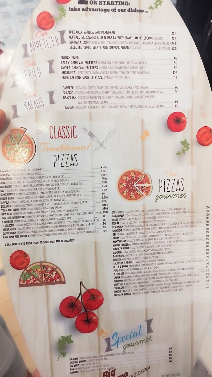 The menu at Pizzeria Big Wave offers a relaxed, casual dining experience focused on classic Italian flavors and comforting dishes. Here, you can enjoy a variety of handcrafted pizzas—from familiar favorites like Diavola and Capricciosa to more distinctive options such as Pizza Carbonara or the unique Pizza Con Salami Picante. Alongside these, lighter bites like Italian salads, garlic bread, and fritters provide perfect complements.